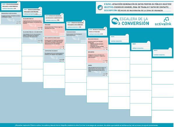 Una buena manera de diseñar la campaña es empezar dibujándolas en papel. Para ello te recomendamos utilizar la «Escalera de conversión».