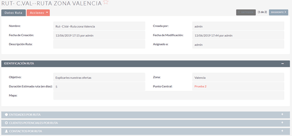 - Los registros de cada tipo incluidos en la ruta: contactos, clientes, clientes potenciales…