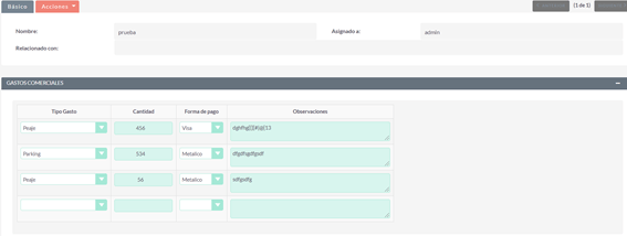 Los gastos comerciales irán asociados a un cliente o ruta. Las opciones de registro de gastos comerciales son: