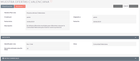 Una vez creada la planificación de la ruta comercial: