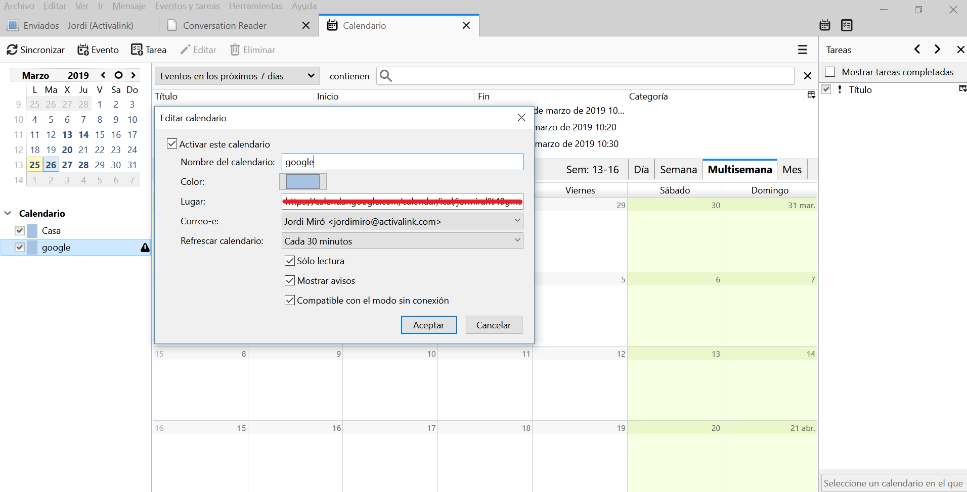 • Para el calendario «thunderbird» (en el caso de Outlook es similar):