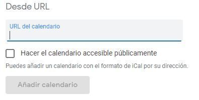 • Haga clic en «Añadir calendario» y luego seleccione la opción de «Desde URL»: