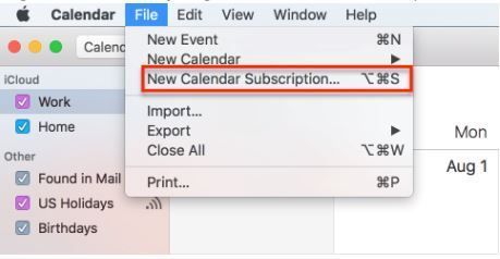 • Haga clic en «Archivo» y luego seleccione «Nueva suscripción de calendario».
