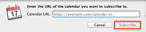• Ingrese la URL de suscripción de iCal y luego haga clic en «Suscribirse».